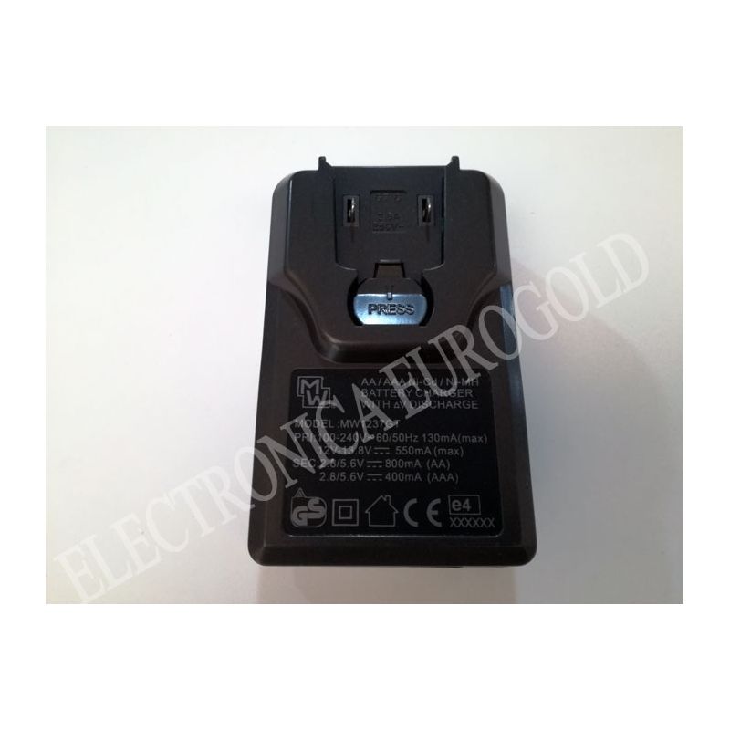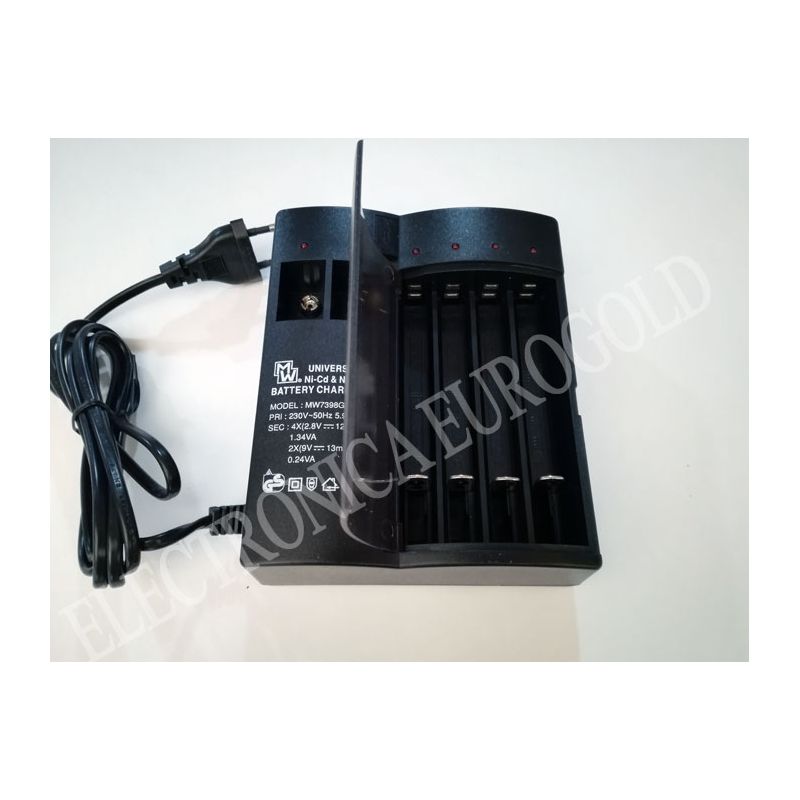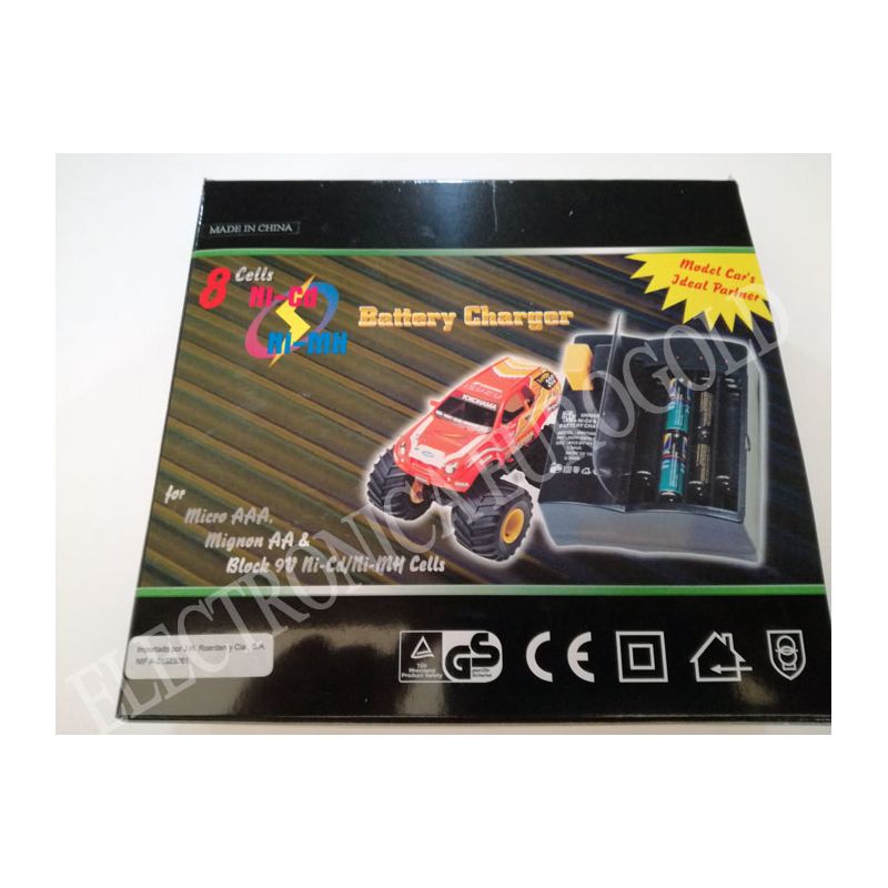 Es ideal para cargar al mismo tiempo varias baterías como las que se utilizan en aparatos de mando a distancia o en juguetes.Mediante el selector puede conmutarse entre carga de baterías Ni-Cd o Ni-Mh.